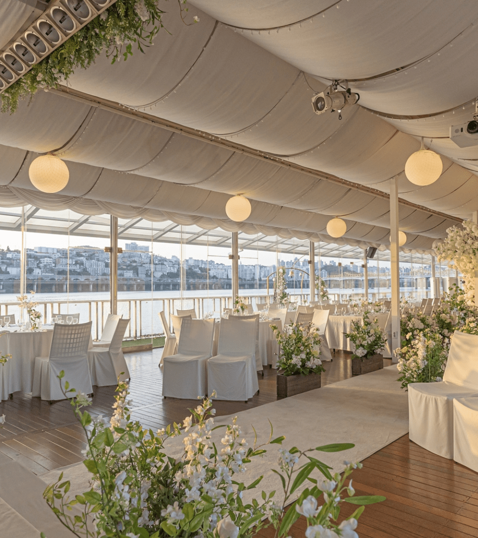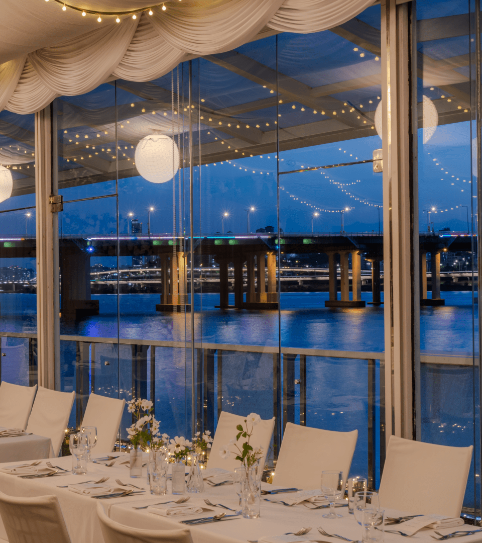 한강 위 윤슬이 매력적인 선상 결혼식 | (스테이크 코스) 70~200명 가능